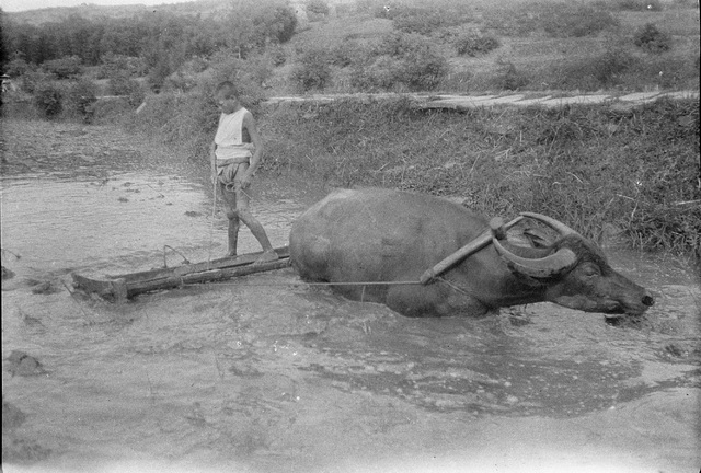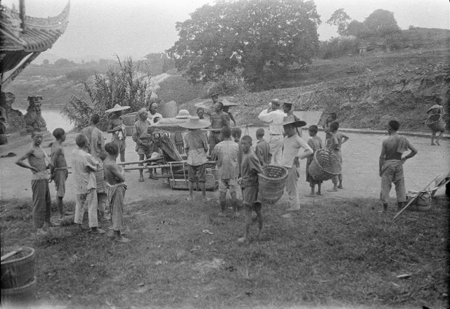 作者甘博一行人,费佩德在用照相机给当地人照相。
