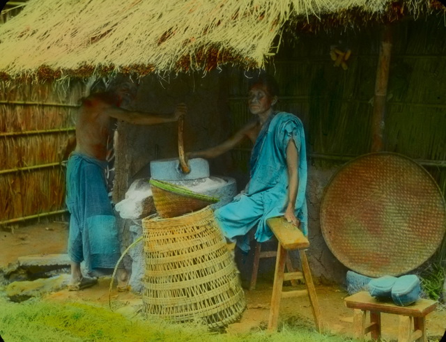 一对老夫妻正在石磨上磨东西,达州通川。还是上图中的老大爷。
