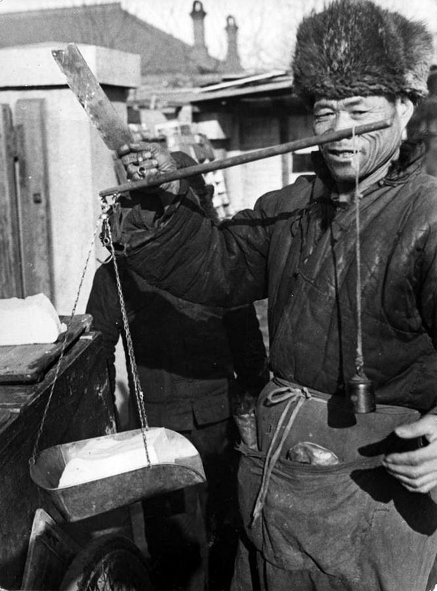一位街头商贩正在做买卖,可能是在卖豆腐(1939年)