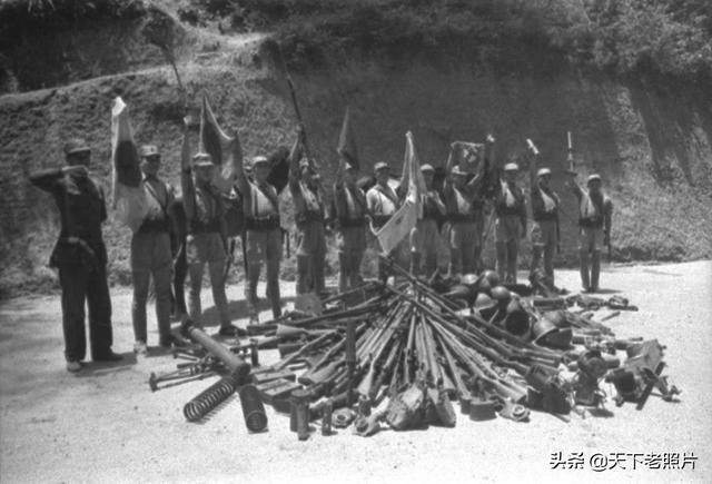 分享一组见证历史的老照片给大家,这是一组关于抗战期间国*军士兵缴获的日本人武器装备并进行展示的场景,让我们一起缅怀那段艰苦的岁月。