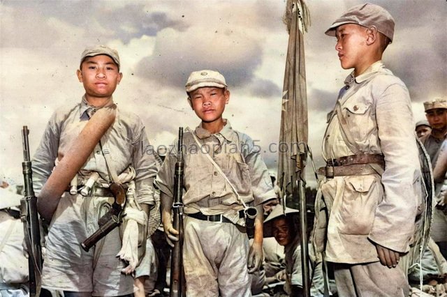 1945年7月,新一军的娃娃兵,三人分别为15岁、 9岁、11岁。此时军长孙立人率领新编第一军抵达广西南宁,拟进攻广州。