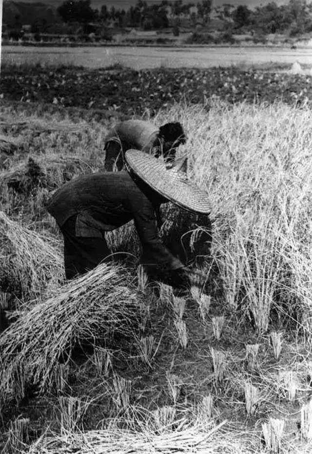 1947年10月,田内耕作的妇女,由于贫困没有水牛。