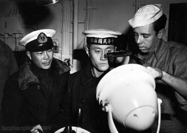 国军水兵与美国水兵在操作高射机枪