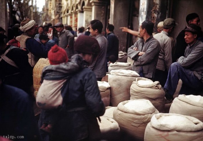 1945年11月29日,昆明,席勒上校住所前,等待被雇佣干活的人们。