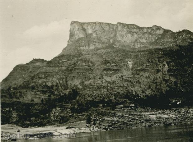 罗林在经过黄牛峡时所拍摄,岸边高耸的山峰,山脚处,我们可以看到几处房屋隐现。