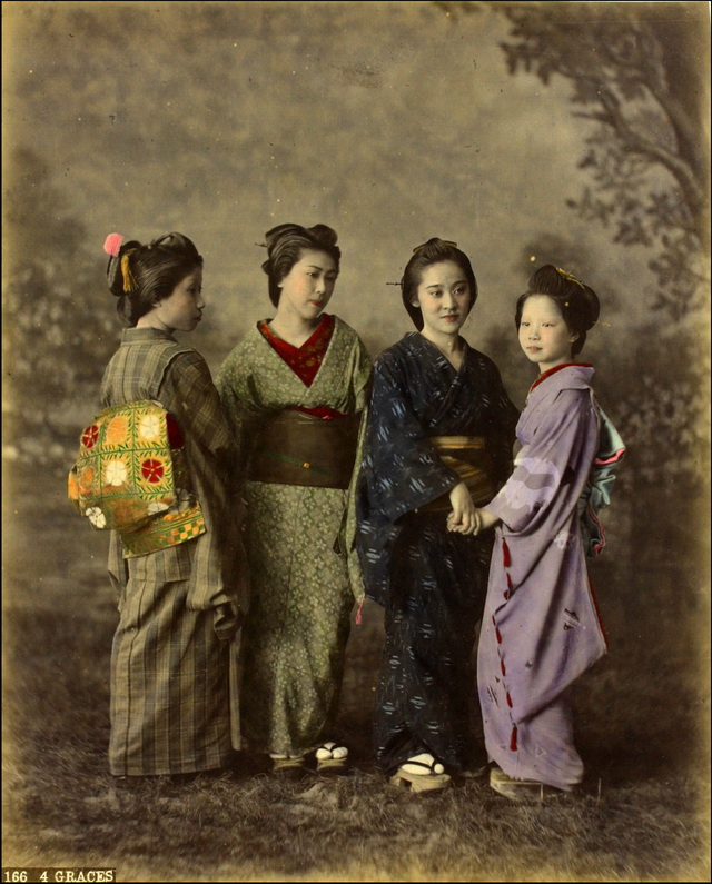 本组照片拍摄时间大概170年前后,彼时的日本处于明治维新时期。照片原本是黑白照,经过后期手工上色复原。